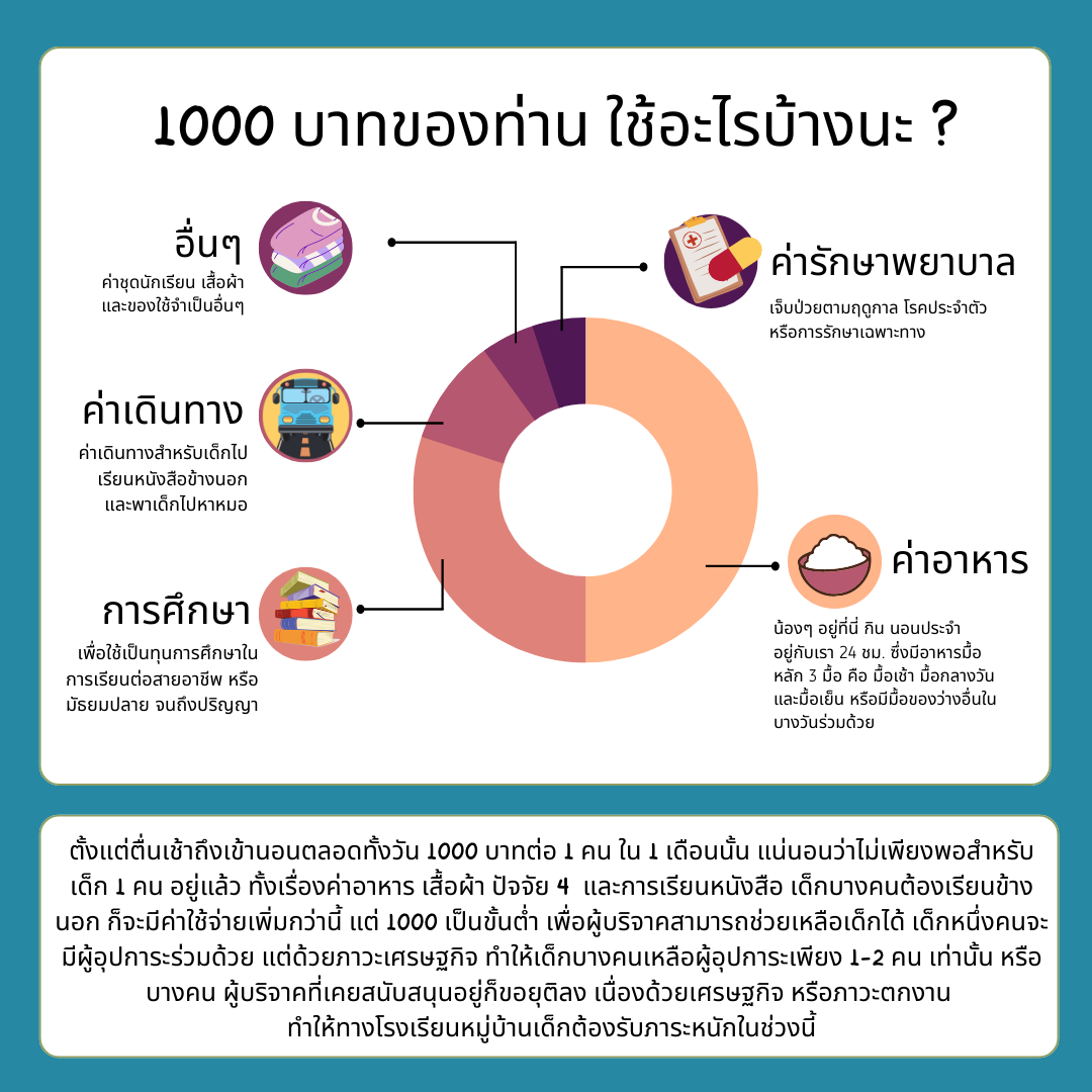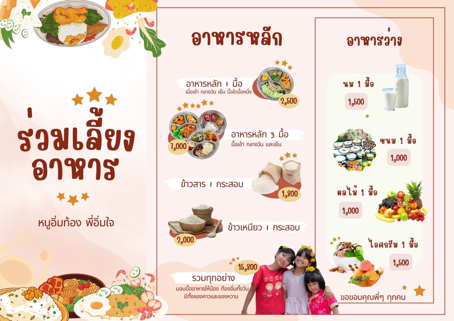 หากท่านมีความประสงค์จองเลี้ยงอาหารเด็ก ติดต่อ โรงเรียนหมู่บ้านเด็ก
